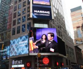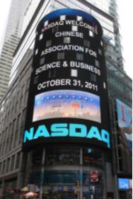 会议的最后一段在我们的合作伙伴纳斯达克在时报广场的纳斯达克市场举行。与会者成为纳斯达克收市敲钟仪式的嘉宾。把纳斯达克收市敲钟仪式作为峰会的一部分,可以说也是一种创新,把峰会推到了一个新高潮。在敲钟仪式上讲话时我非常兴奋,激动,差点把要讲的话都忘了。我的讲话和敲钟仪式全球做了现场直播,我们峰会的标志,协会的标志,峰会演讲嘉宾的巨幅头像,我们参加峰会人员的巨幅相片和录像,连续一小时在时报广场纳斯达克7层楼高的巨型显示屏上反复连续播出,大大地加强了峰会的影响力以及我们协会的影响力,也表明了我们中美创新,合作共赢的模式深得美国人民支持。