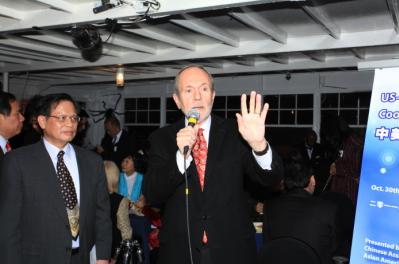 开幕式在游船“棕榈滩之星号”上举行,“棕榈滩之星号”是船主萨尔斯博格设计的, 是纽约第一艘用生物能源推动的绿色游船。绿色,时尚,又给了与会者长达3个多小时的交流时间,给了很多年轻人接触世界顶级大师的机会。纽约大学理工学院院长赫廷(Jerry Hultin)在船上的精彩讲话《技术开创了一个新的黄金时代》也使大家受益良多。他说他当过美国海军部的副部长,知道怎样在船上讲话。我们这个主讲嘉宾选得真妙。接下来,平时严肃的毛中颖科技参赞的致辞也讲得风趣幽默。徐亚南大使,李建英大使夫妇也在徐亚南大使将从联合国离任前专程前来参加,使我们倍感温暖。们这