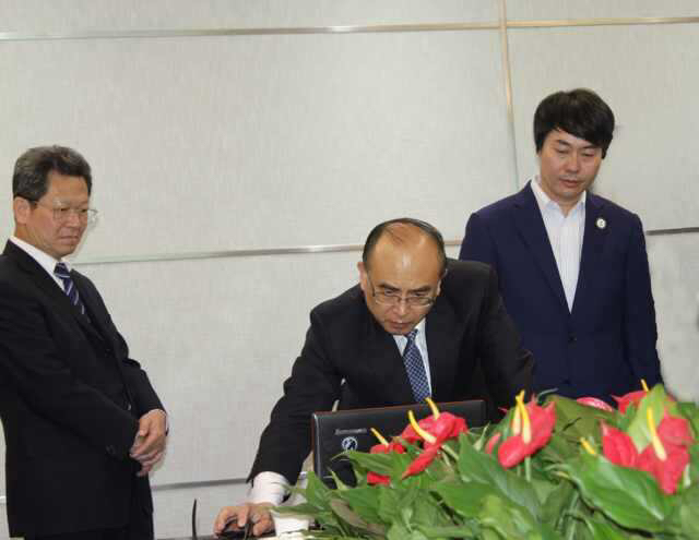 11月25日李大西向科技部曹健林付部长,许勤市长介绍广大-康奈尔中美科技转移中心的商业模式:曹部长和中心CTO陈水硖教授交流:许勤市长亲自操作,了解中心的科技项目。